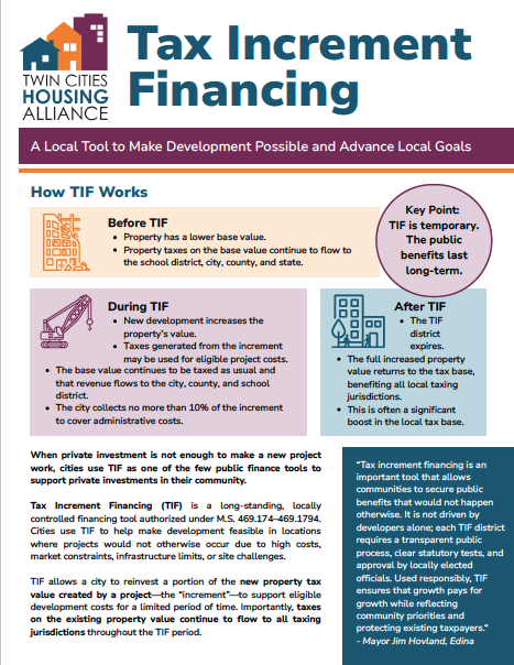 When private investment is not enough to make a new project work, cities use TIF as one of the few public finance tools to support private investments in their community.